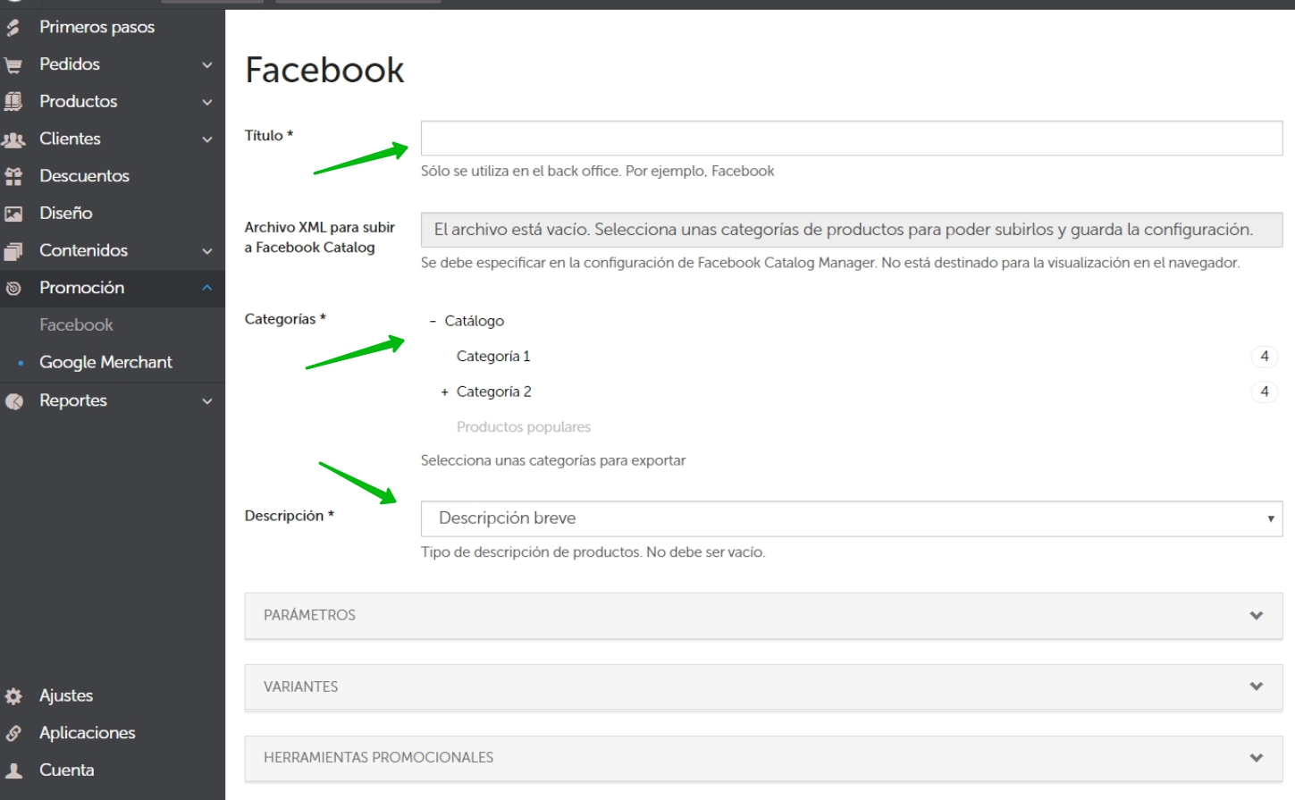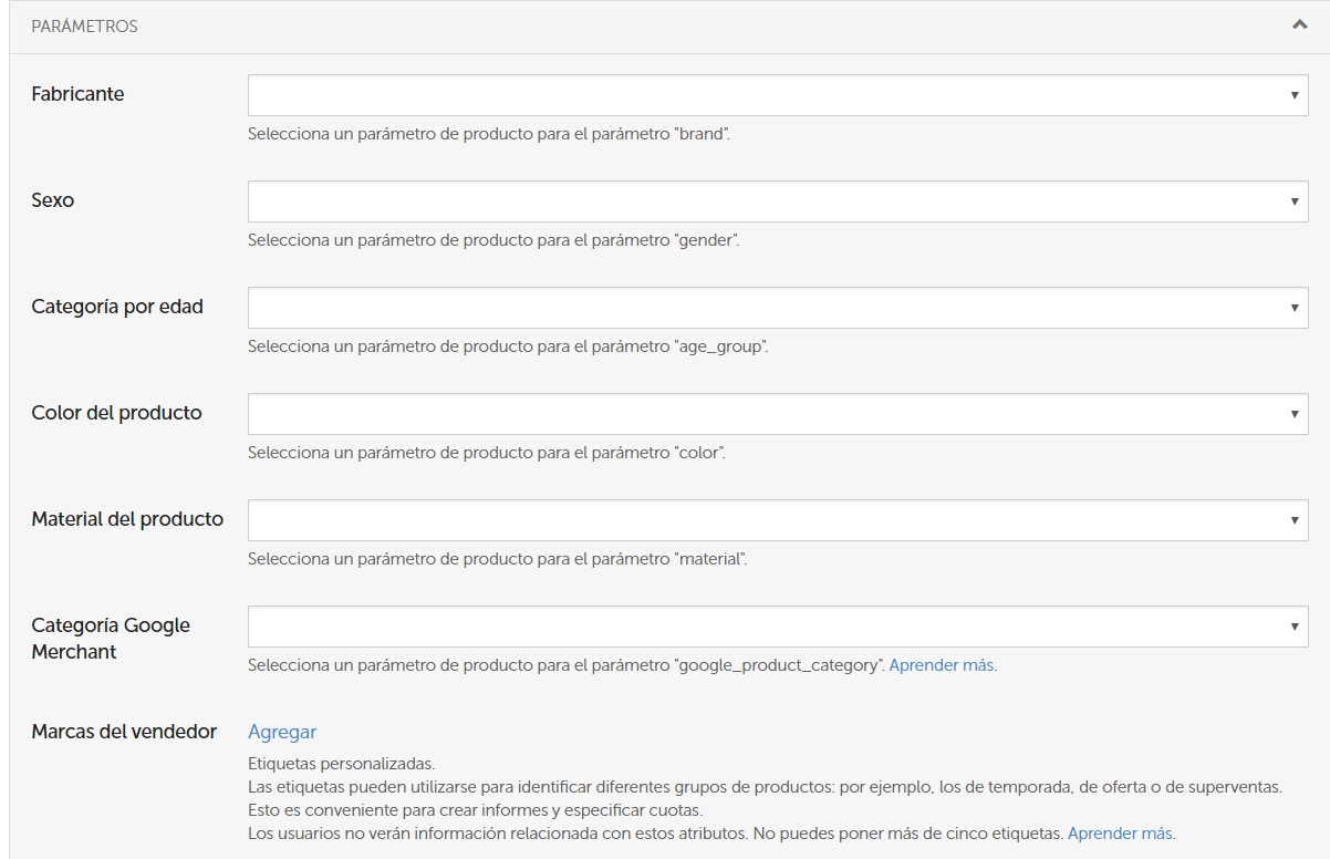 Si tus productos no tienen parámetros avanzados que te gustaría exportar, continúa con el paso 4.