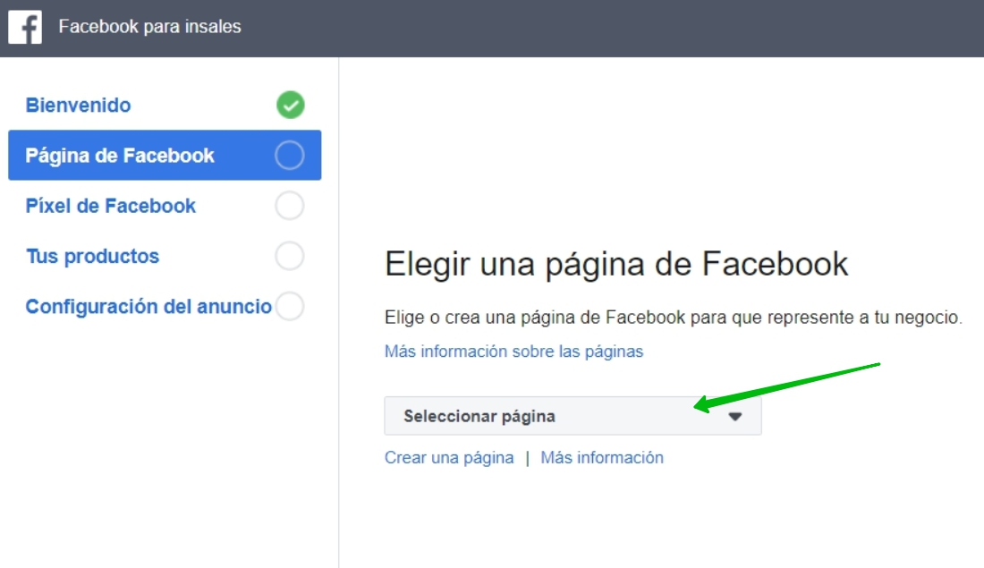 Instala Facebook Pixel o selecciona uno existente (si lo agregaste anteriormente).