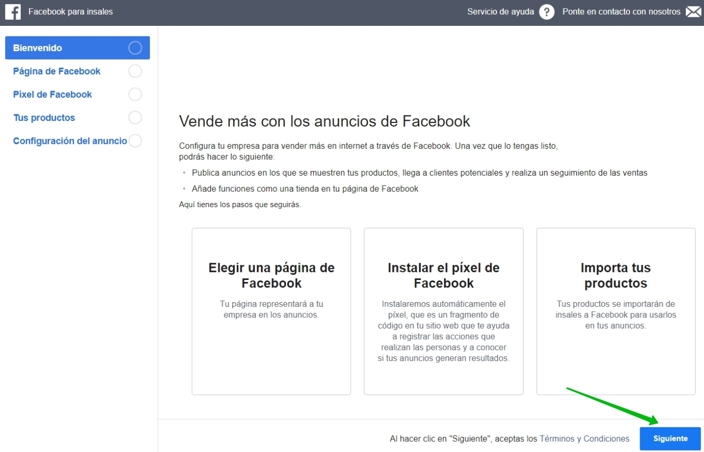 2. Acepta los términos de uso (el botón "Siguiente"):